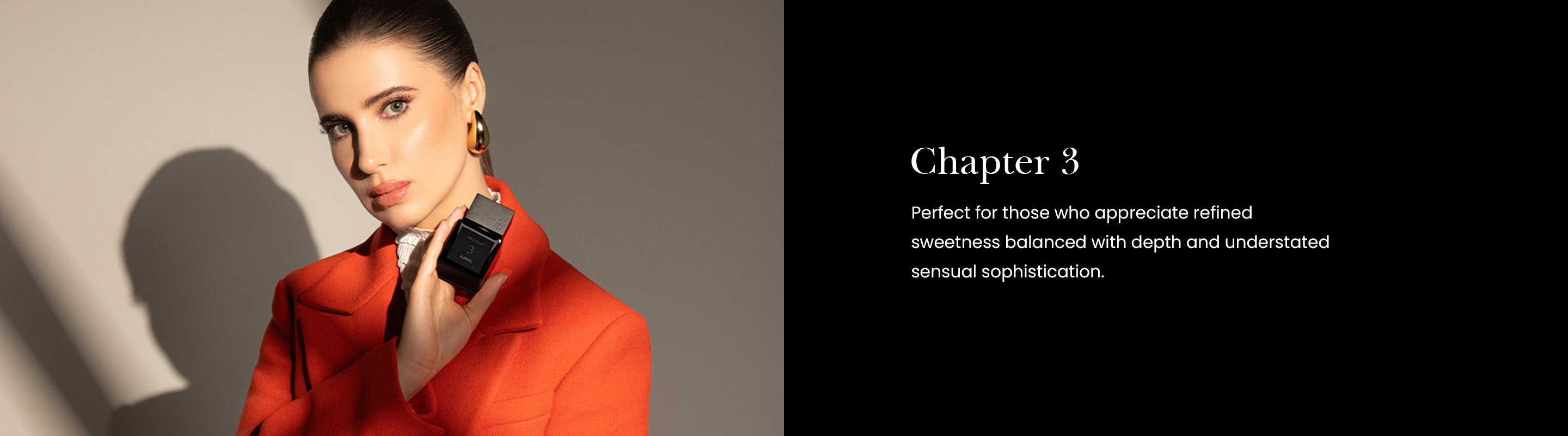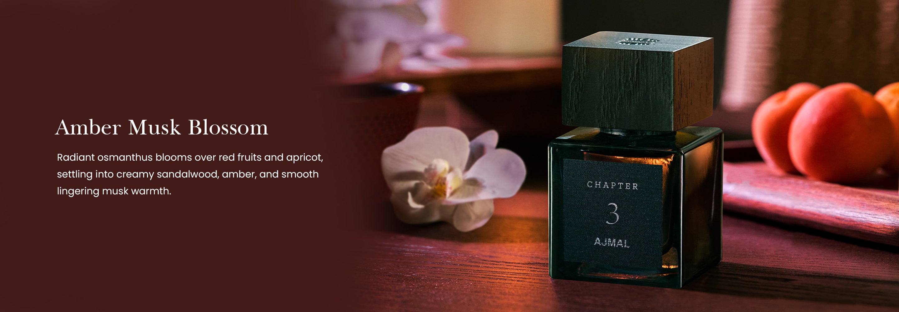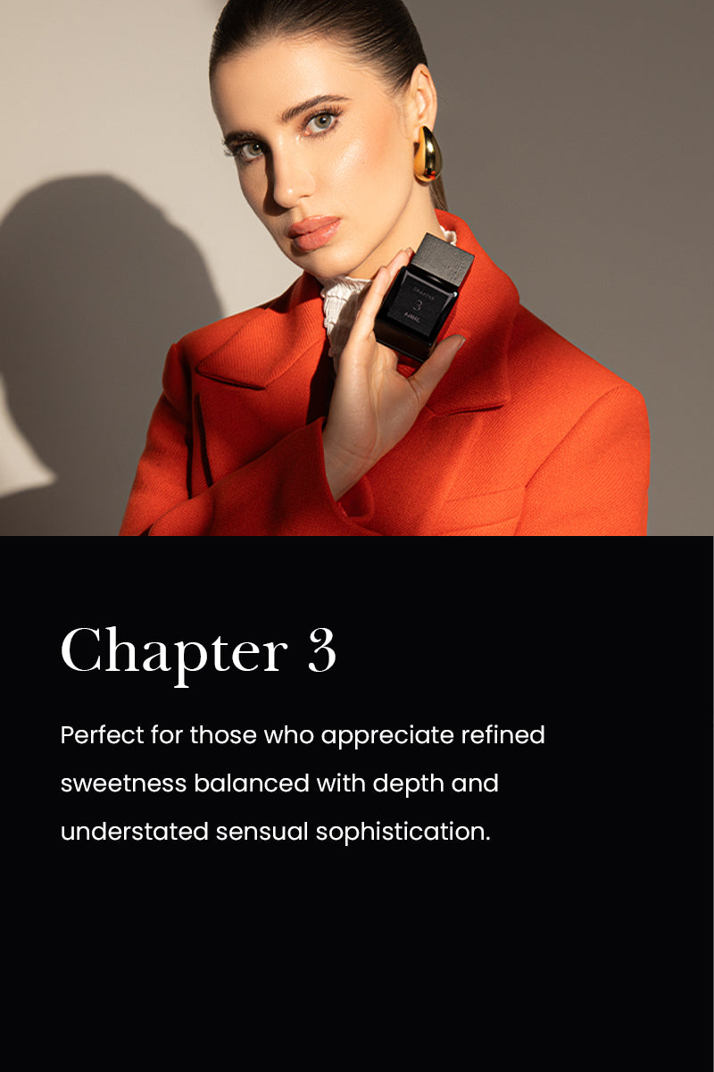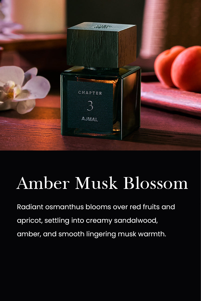A luminous interpretation of osmanthus, Chapter 3 unfolds in layers, each note a moment of quiet indulgence. This fragrance is a Floral Fruity Green masterpiece that captures the essence of #N/Ature’s elegance—fresh, vibrant, and endlessly refined. It begins with an inviting burst of red fruits, apricots, and peaches, evoking the crisp sweetness of an orchard at its peak. This lively introduction is tempered by green undertones, adding a #N/Atural freshness that feels airy and invigorating. At its heart, the osmanthus flower blooms with golden warmth, its soft, apricot-like sweetness delicately paired with the velvety richness of rose absolute. These floral nuances create a composition as romantic as sophisticated, striking the perfect balance between delicacy and depth. The base introduces a sensual depth, where creamy sandalwood, amber, and musk combine to create a comforting and unforgettable finish.
